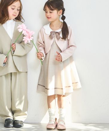 【オケージョン対応】ガールズ ボレロセット シフォン袖 ノーカラーワンピース