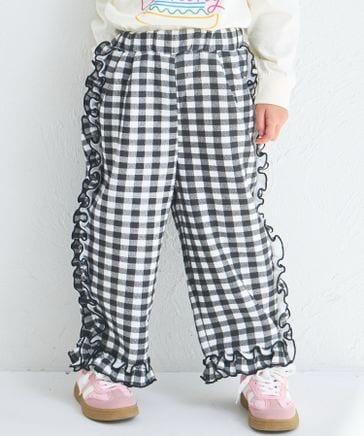 【ぬくふわ】ガールズ チェック サイドフリル 裏起毛 パンツ