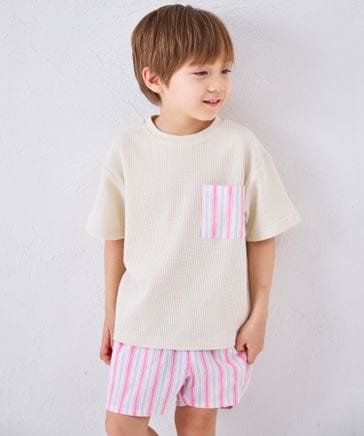 【リンクコーデ】【さらっとワッフル】ユニセックス 半袖 セットアップ