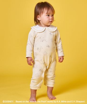 【くまのプーさん】【リンクコーデ】【ベビー】総柄 襟付き ロンパース