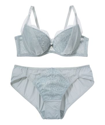 【丸胸メイクするブラジャー&ショーツセット】サイドチュールレースブラジャー&ショーツセットなちゅこれ