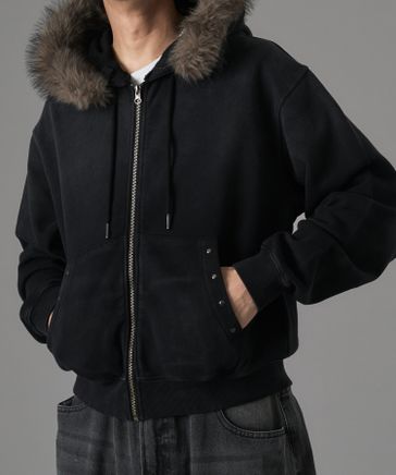 kutirmen/2WAYフェイクファーフードジップパーカー