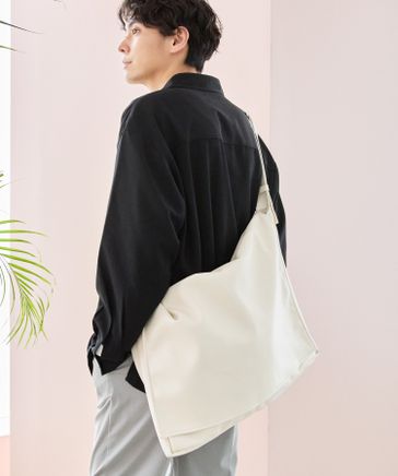 シンセティックレザーコンビ/タックラウンドショルダーバッグ