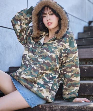 【エアサーマル】ガールズ 総柄 リバーシブル ボアブルゾン