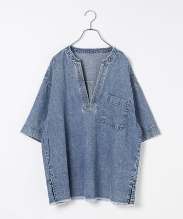《追加予約/natural by clip》シアーデニムフリルVネックブラウス