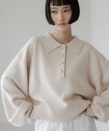【新色予約開始】バイカラーポロニットLS