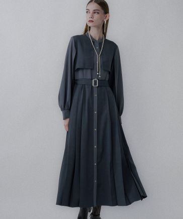 【LADIES】マルチマテリアルプリーツワンピース