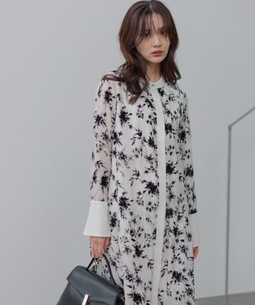 【一部予約】フロッキーフラワーシャツミニワンピース