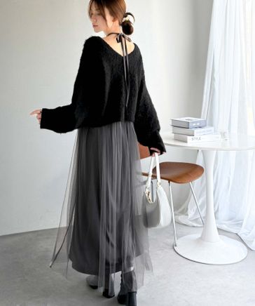 褒められワンピ♪マルチwayニット×チュールワンピースセット(セットアイテム)ce1260524