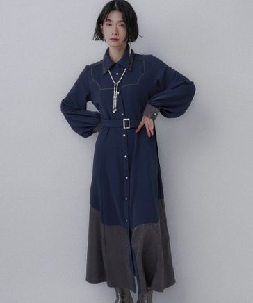 【選べる着丈】サイドレースキリカエシャツワンピース