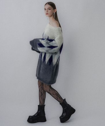 【WEB先行予約 LADIES】アーガイルニットミニワンピース