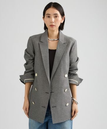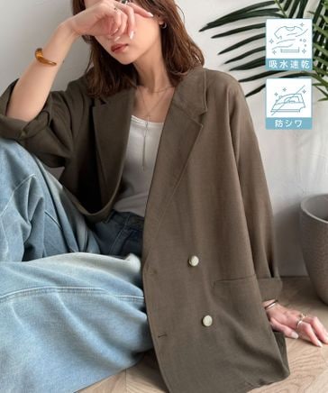 【UVカット、防シワ、接触冷感、吸水速乾】ビックシルエット金ボタンダブルジャケットce1265041