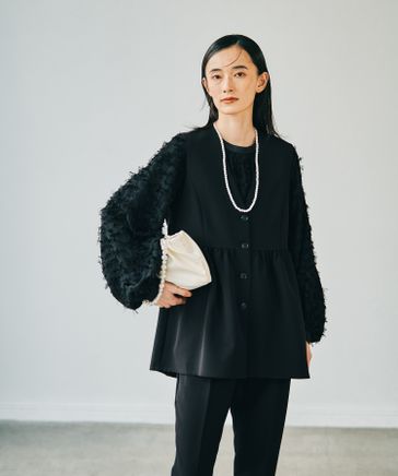 《リネンライクドライシリーズ》フリルW長袖ジャケット【カラー予約】