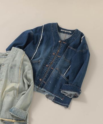 【一部カラー追加予約】フリルカラー甘織りデニムシャツブルゾン《CLIP denim》