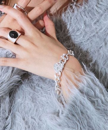 【シルバー925プレーティング】ハートチェーンブレス【一部カラー先行予約】