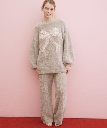 【あたたかで、ホイップクリームのように柔らかな肌ざわり。】ホイップリーレースリボンパジャマ