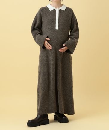 【産前・産後対応】マタニティ/配色ポロニットワンピース