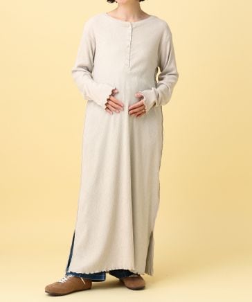 【産前・産後対応】マタニティ/2WAYヘンリーリブワンピース