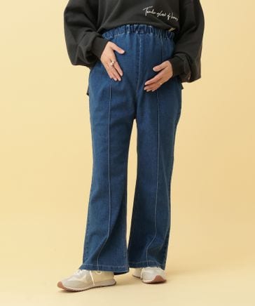 【産前・産後対応】マタニティ/ピンタックデニムフレアパンツ