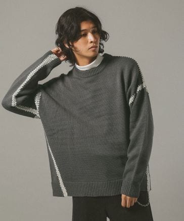 宮沢氷魚さん着用/やわらかリッチモールニット/ステッチ/581139