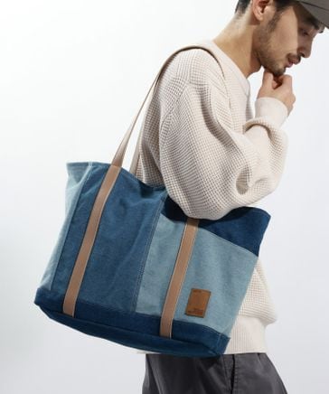 デニムパッチワークトートバッグ