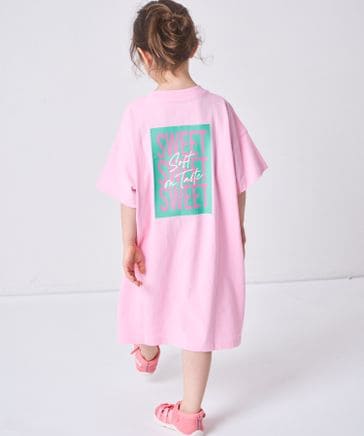【綿100%】【リンクコーデ】ガールズ ロゴプリント チュニックTシャツ