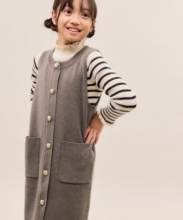 【KIDS/キッズ】エンブレムボタンニットジャンスカ/リンクコーデ