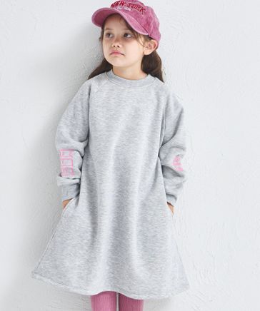 【ぬくふわ】ガールズ ロゴ刺繍 裏起毛 ラグラン ワンピース