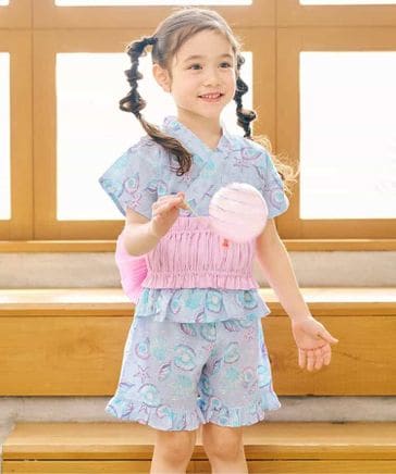 【簡単着付け】ガールズ フリル フレア甚平 簡単帯セット