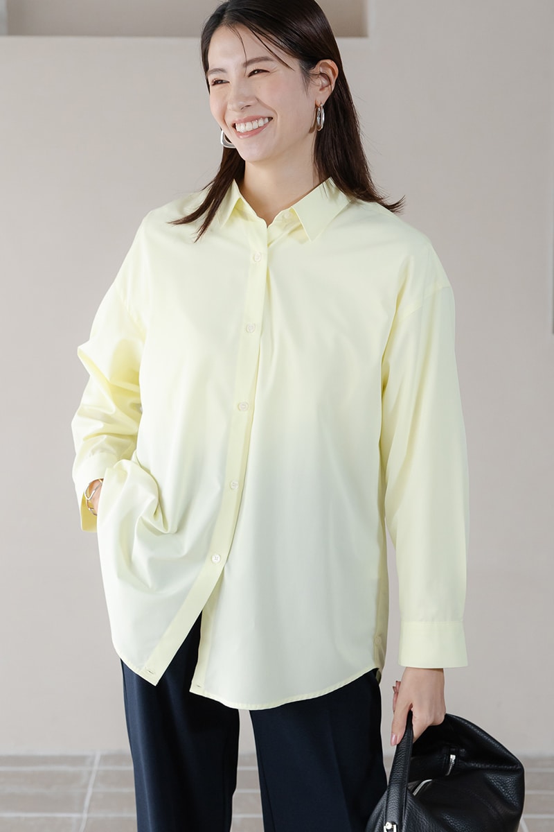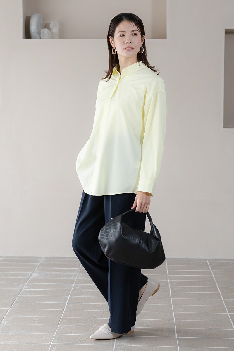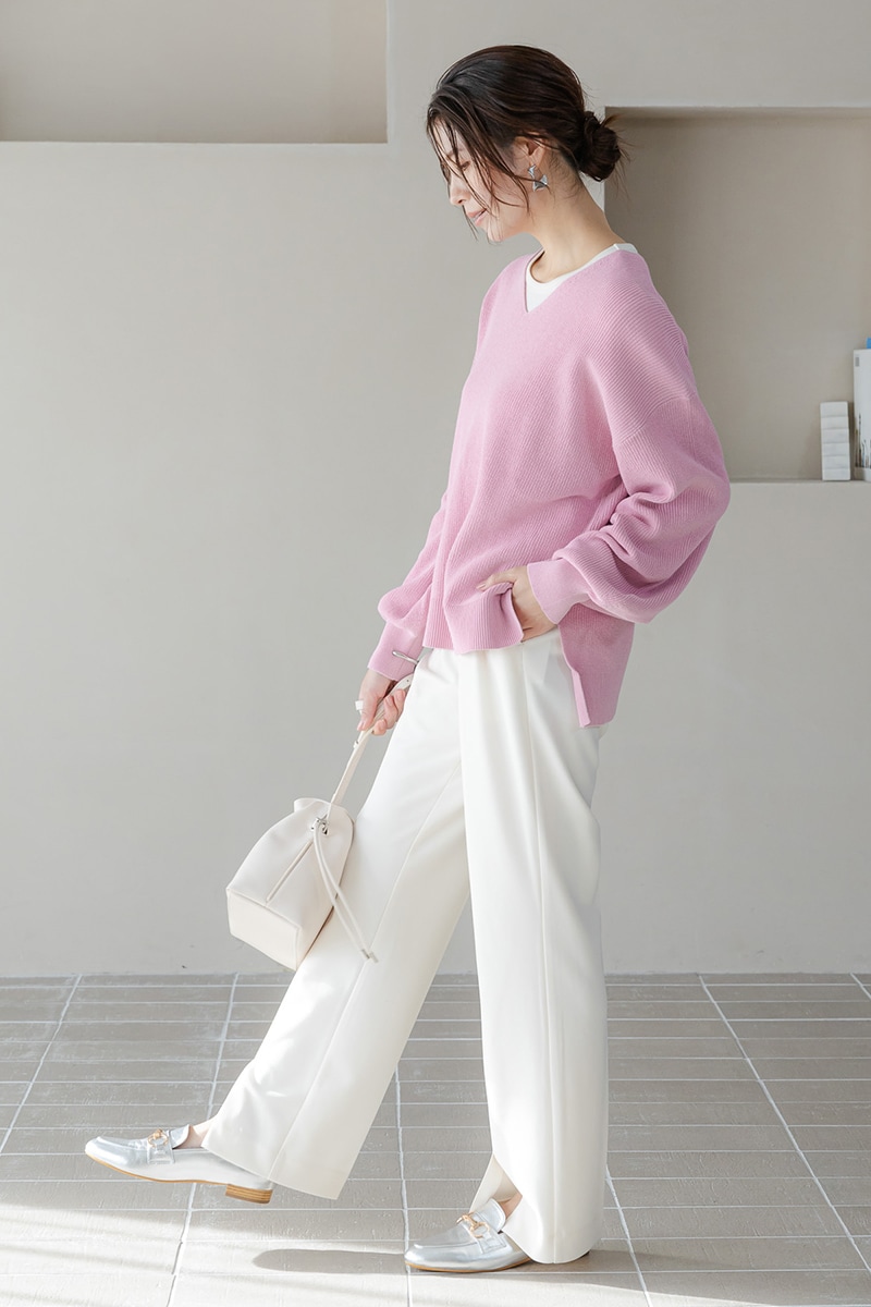 ホワイトパンツと合わせて春らしいさわやかな印象に。