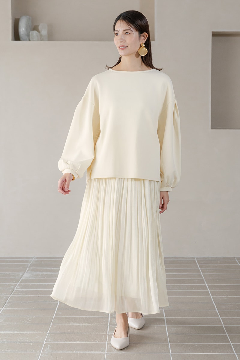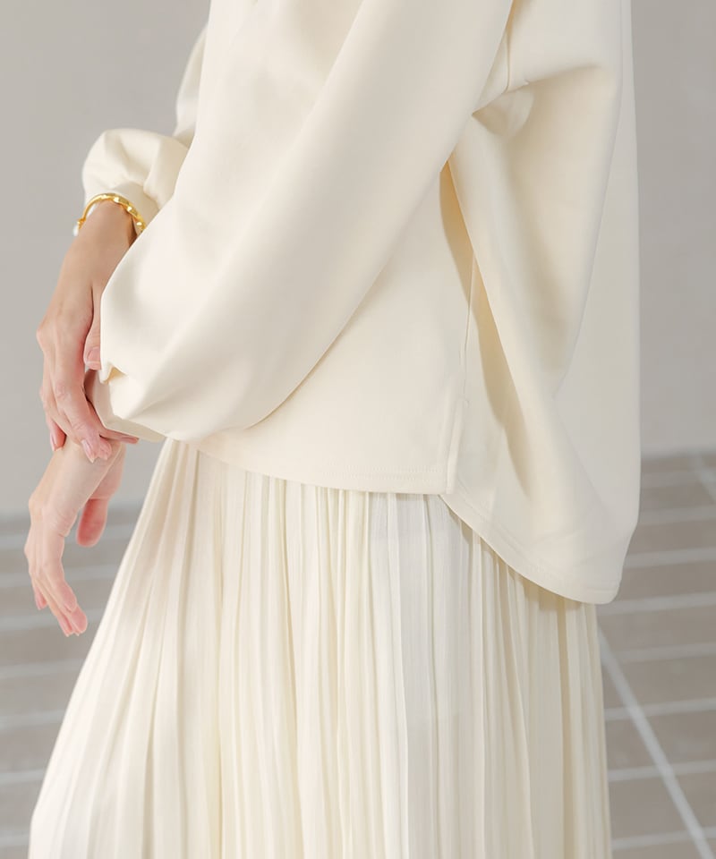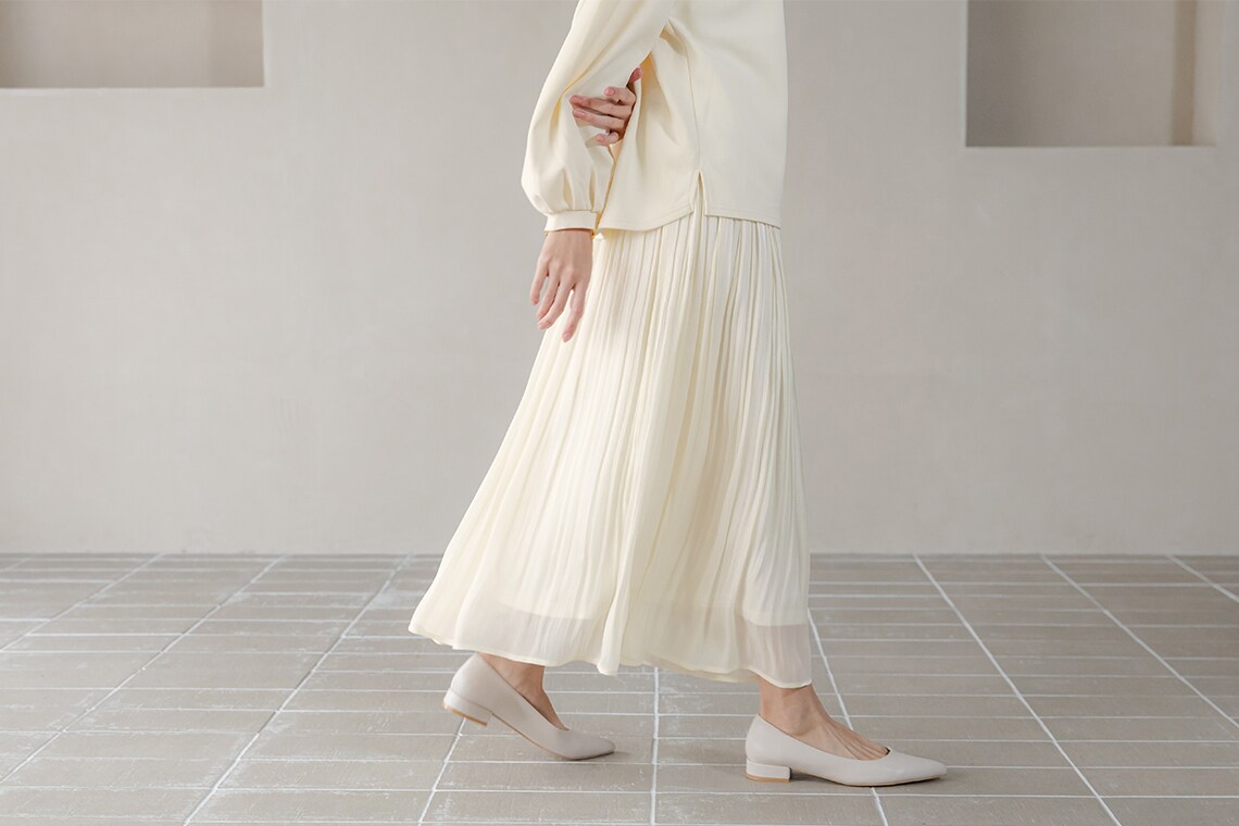 シアーやプリーツなど素材違いのものと合わせるのがオススメ!