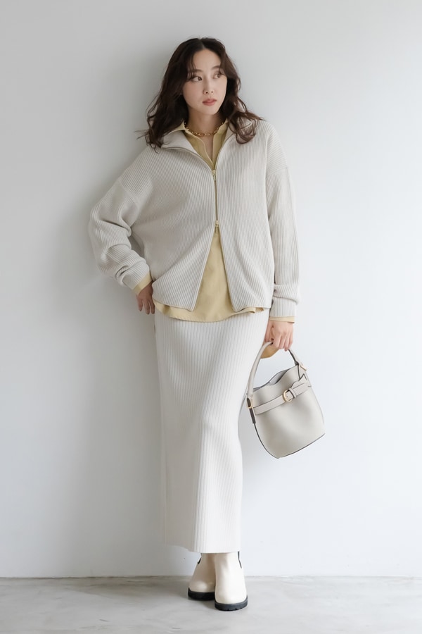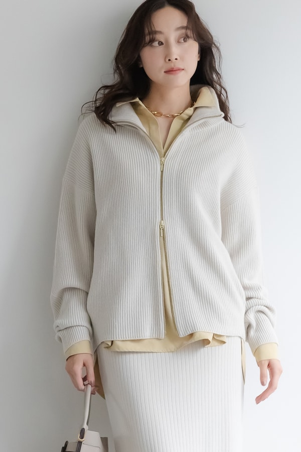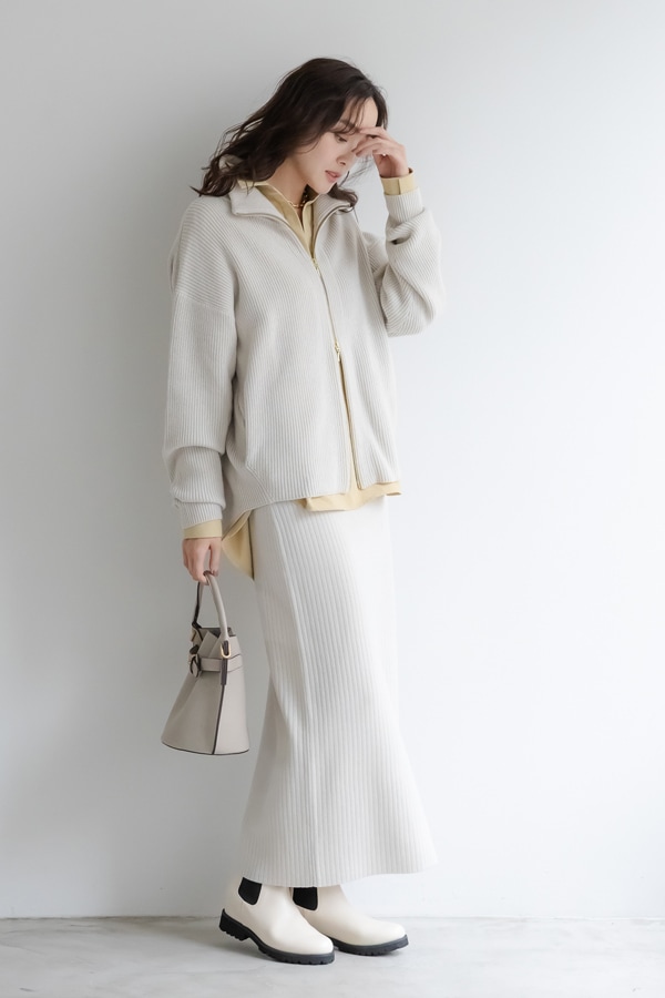 縦リブがスタイルアップを促し、一枚で品のある印象に
