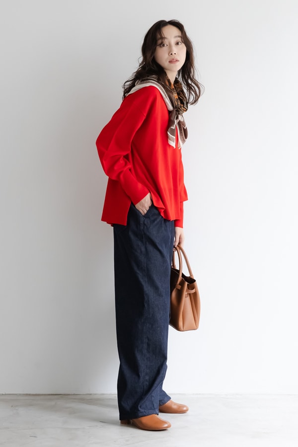 スエット感覚でラフに着れて、ニットの上品さもしっかりキープ