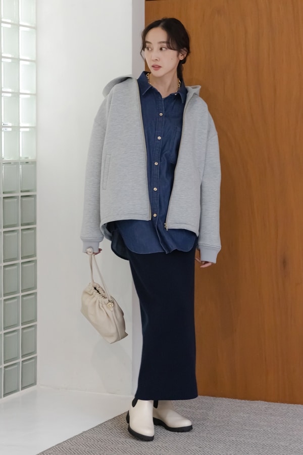 同素材トップスとのセットアップでトレンド感をプラス