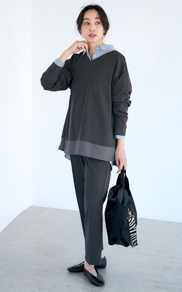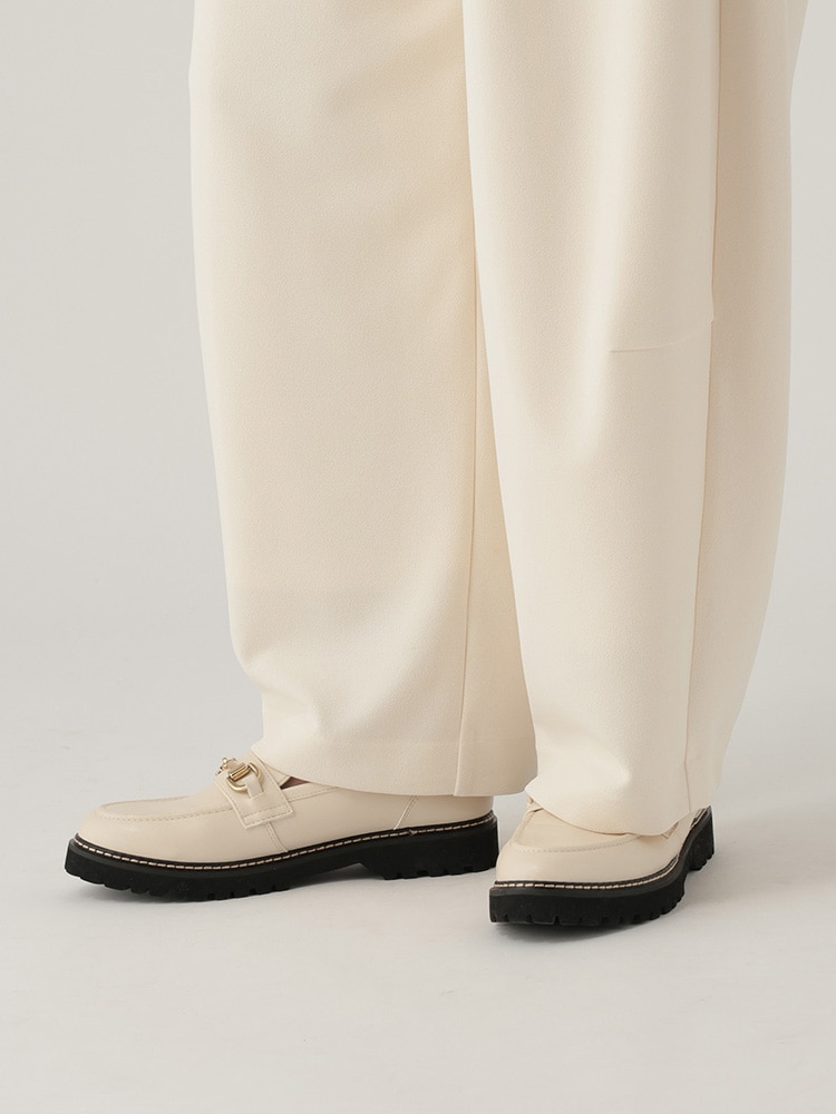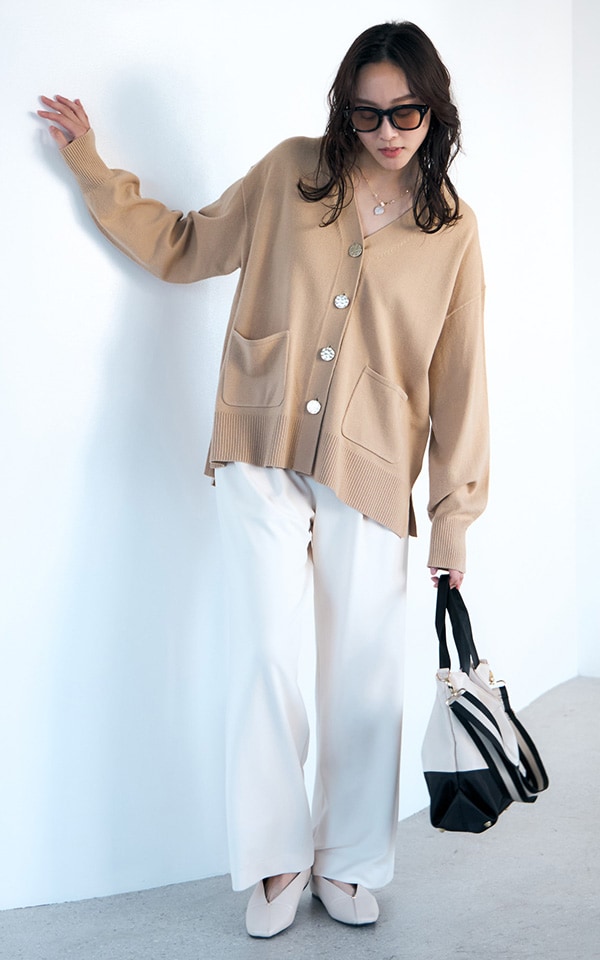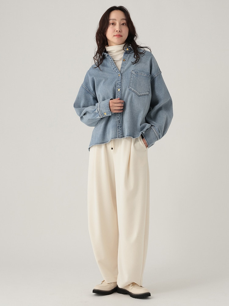 広がりすぎないワイドシルエットでスッキリ脚長見え