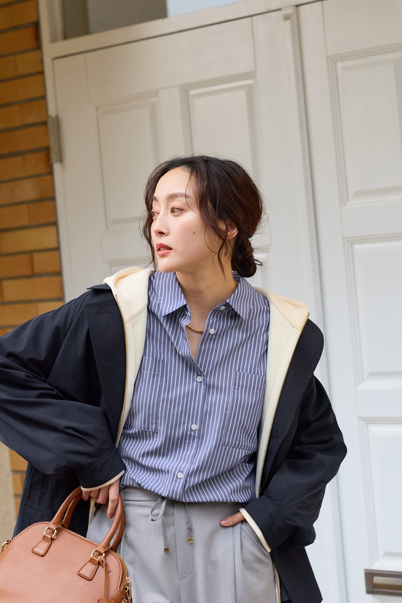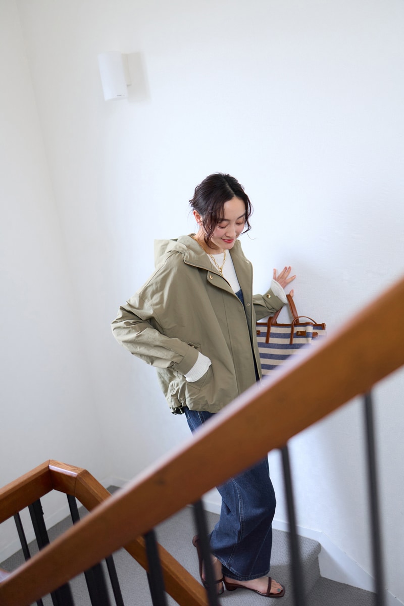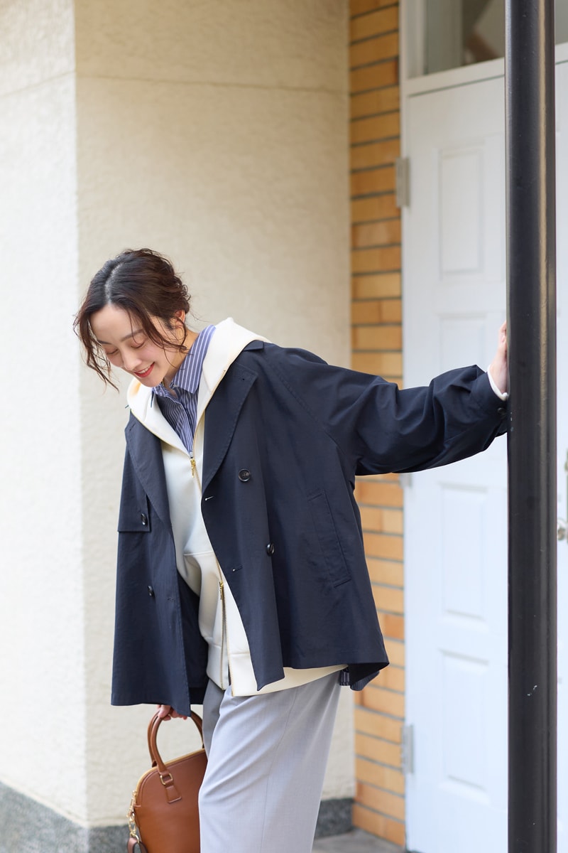 スウェットに羽織れば、暖かさと春の軽やかさを両立。