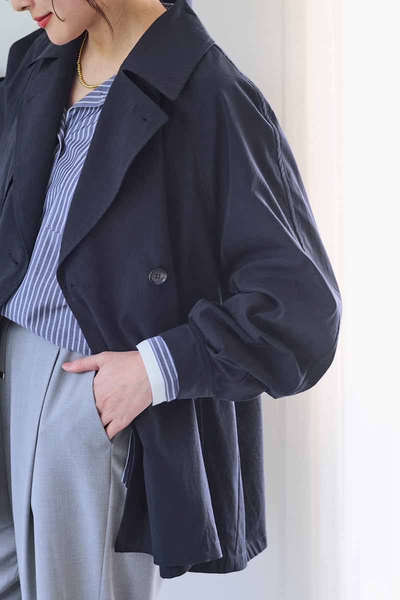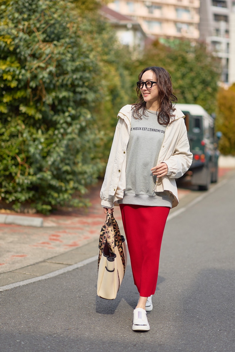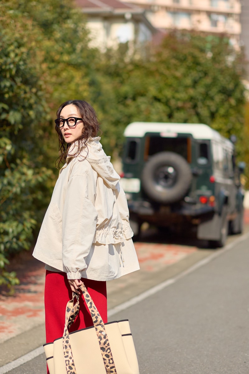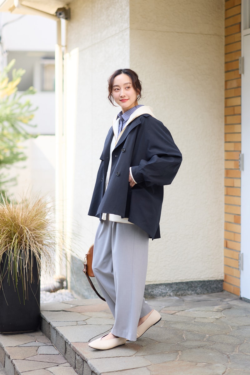 スウェットに羽織れば、暖かさと春の軽やかさを両立。