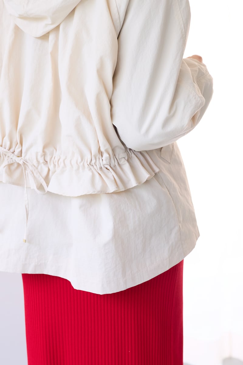 裾ドロストを絞れば、冷たい風を防いで丸みのある形に。