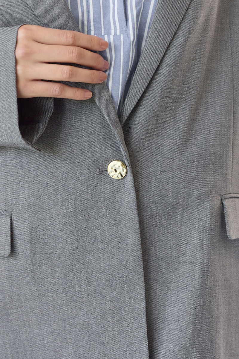 麻のようなドライな質感と、ゴールドボタンが魅力。