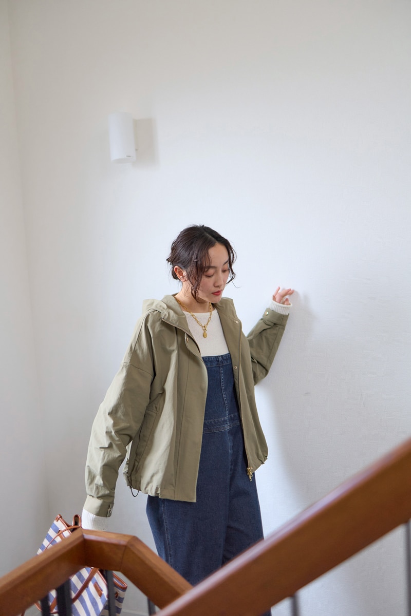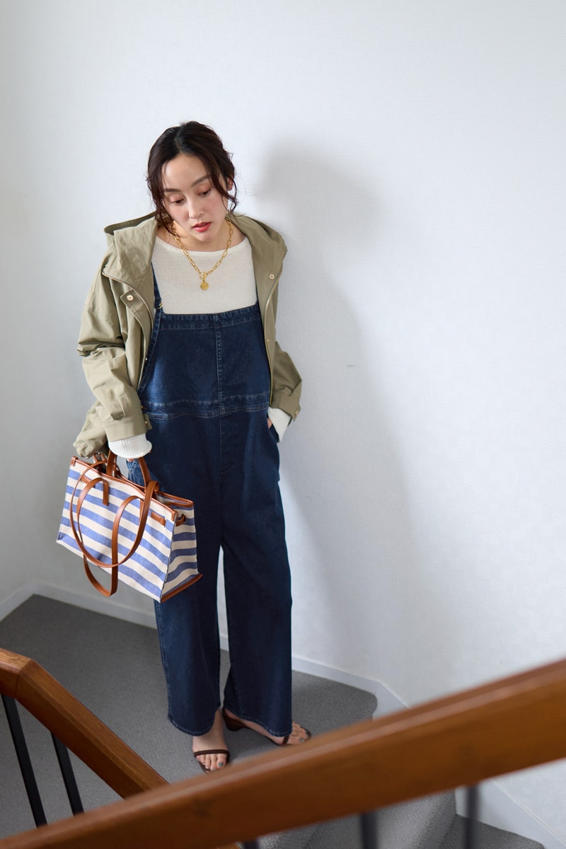オーバーオールに羽織るだけで、春の休日スタイルが完成!