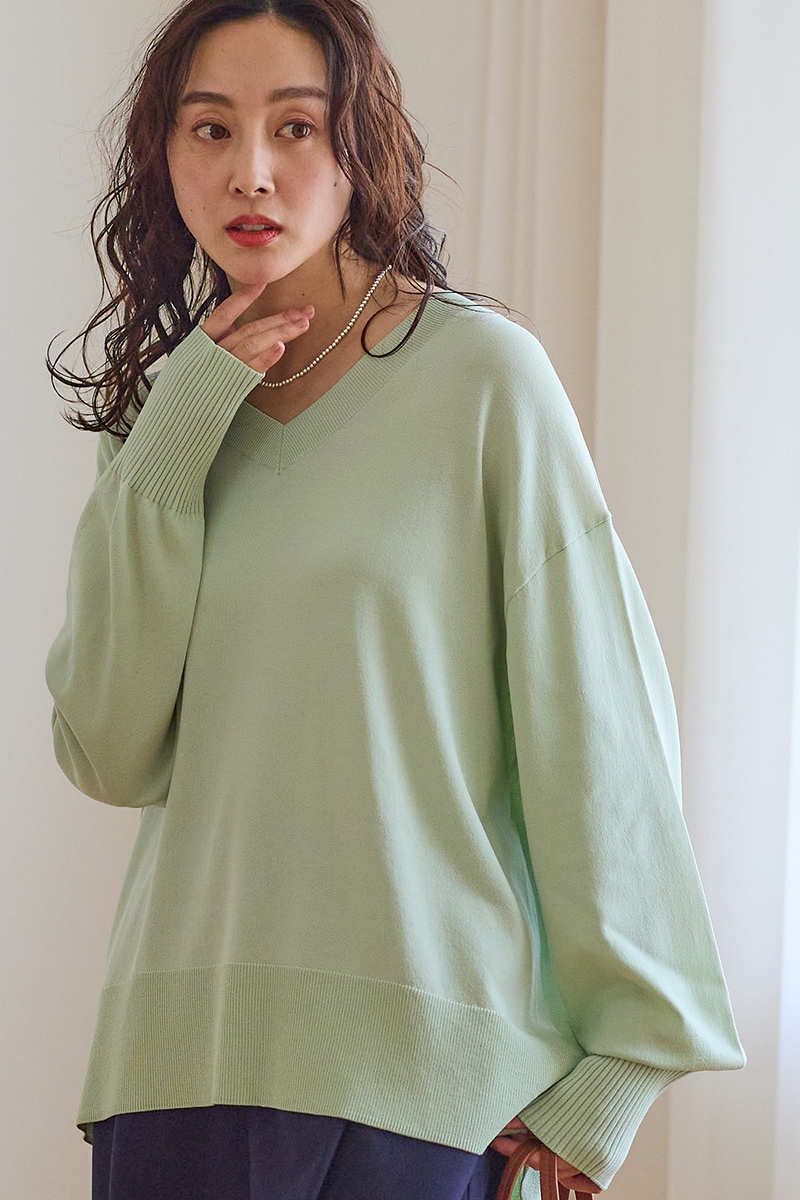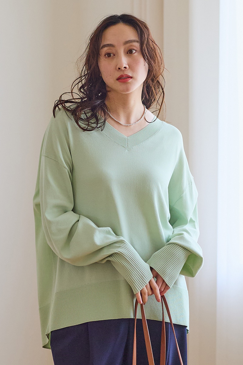 ベーシックで合わせやすい絶妙なVネックは、