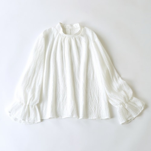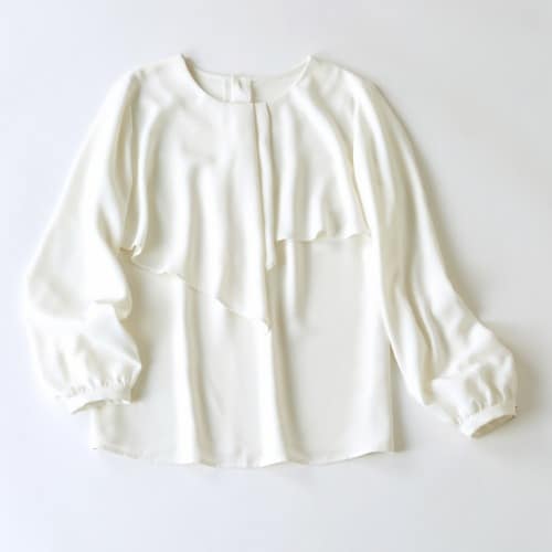 サックスブルーのブラウスに