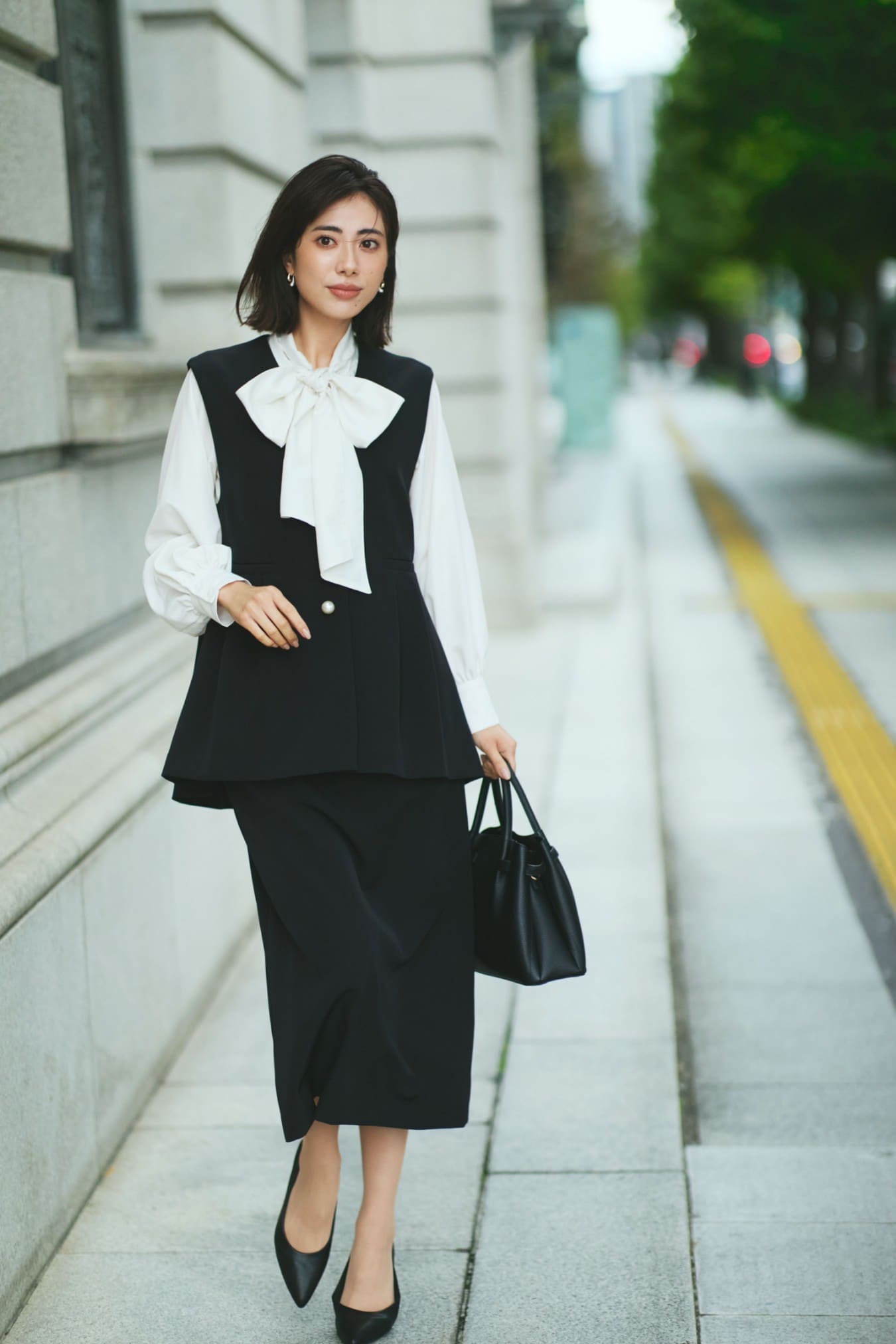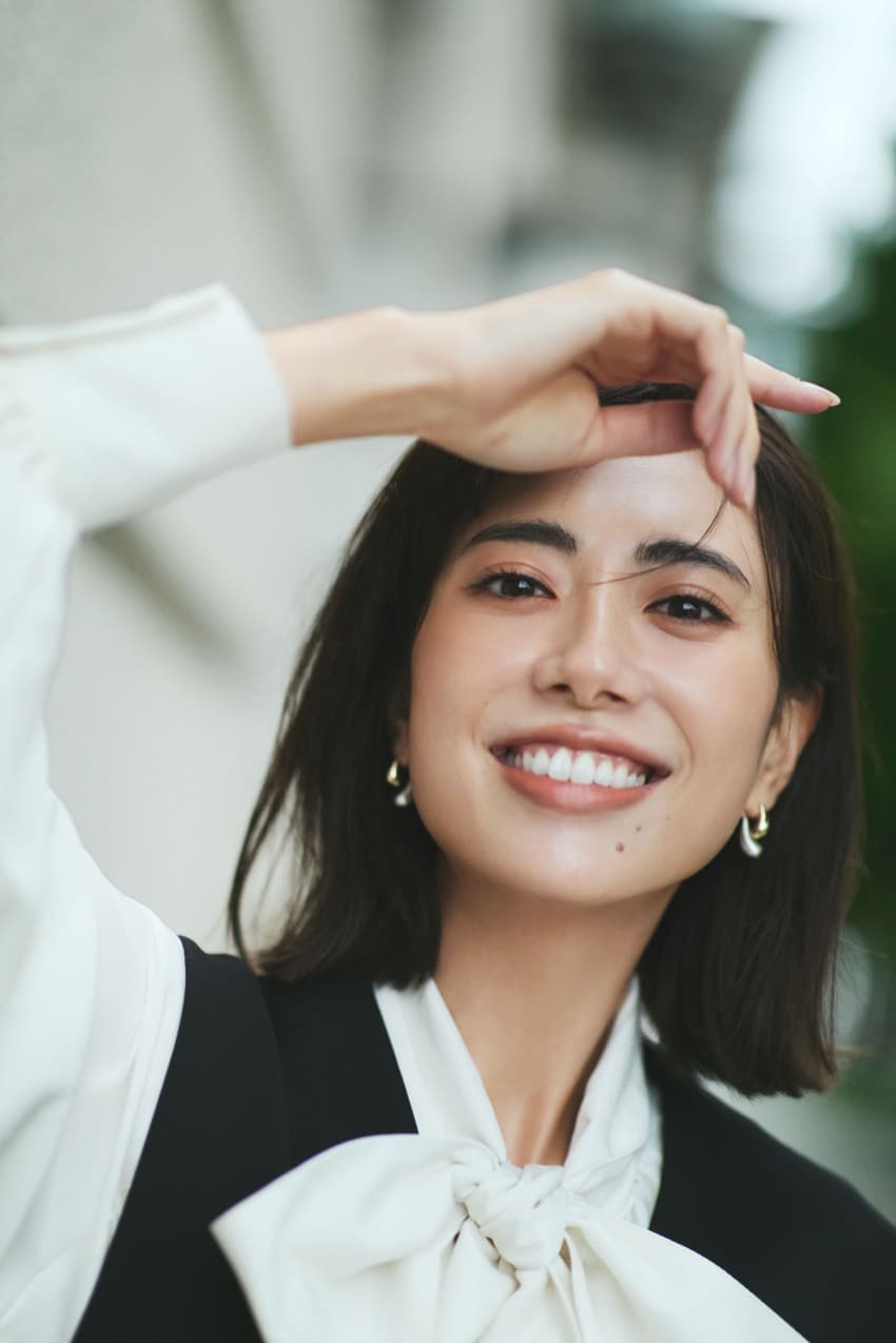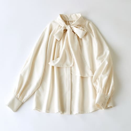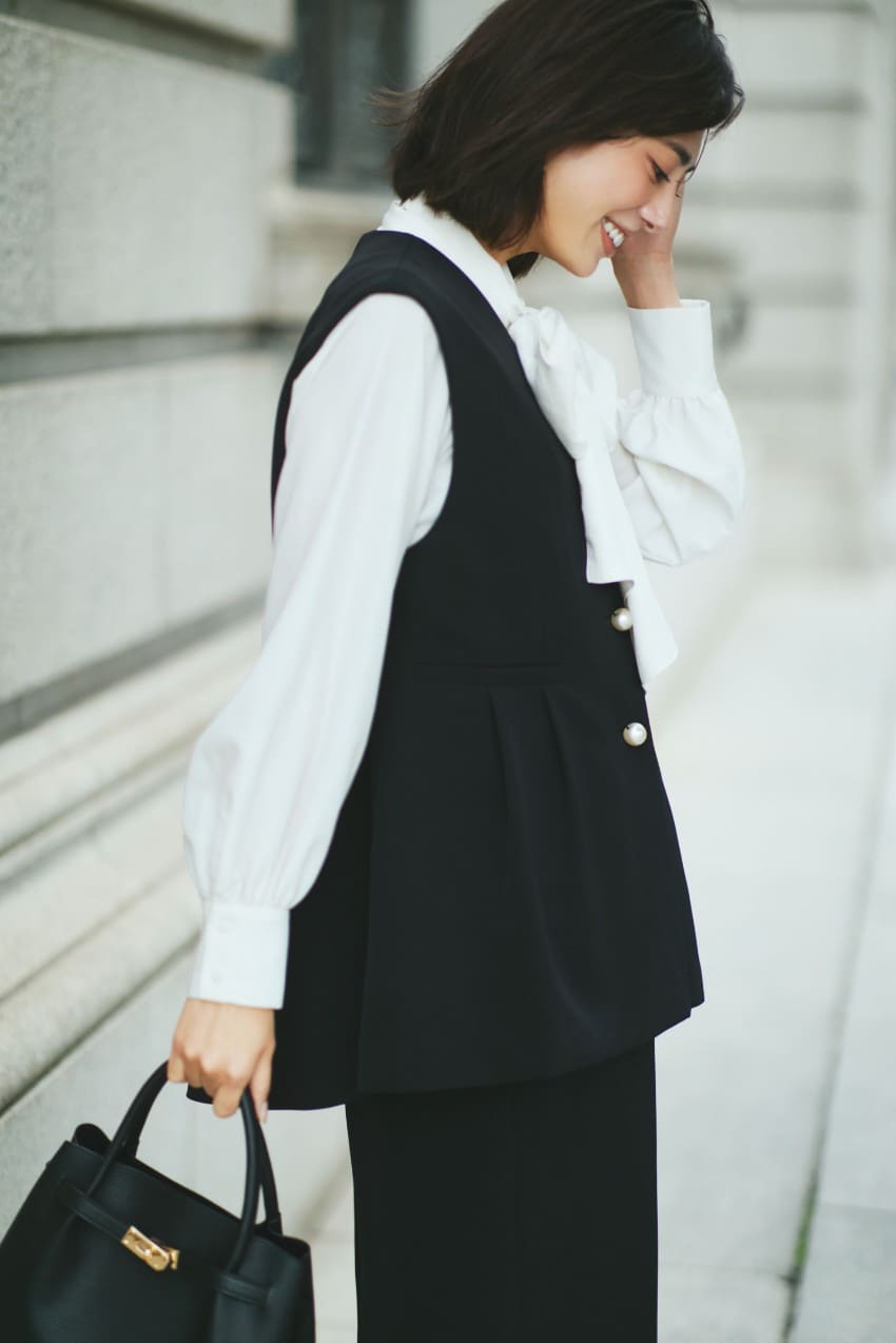 印象的なブラウスのリボンに
