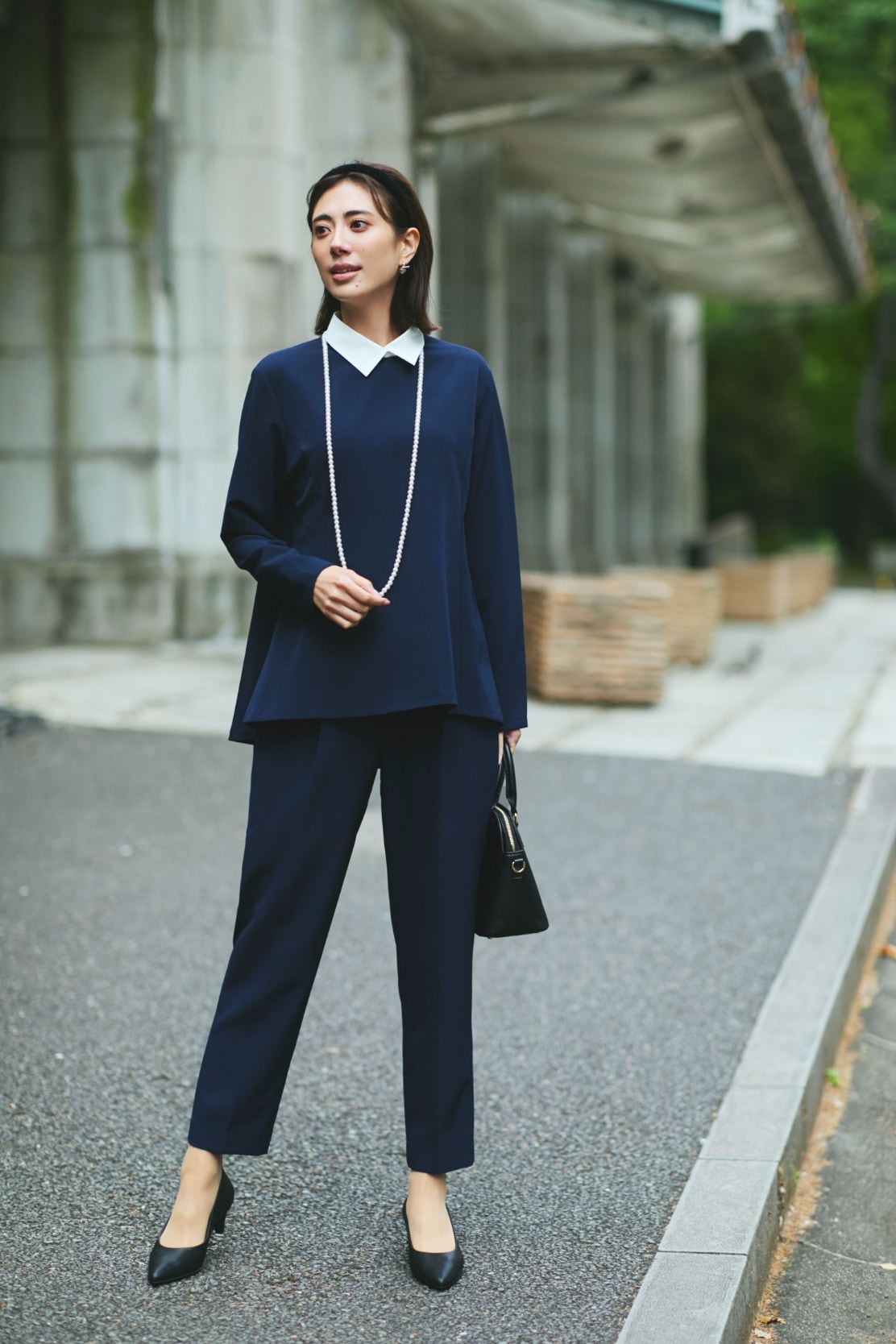 襟付きプルオーバーをネイビーでまとめて