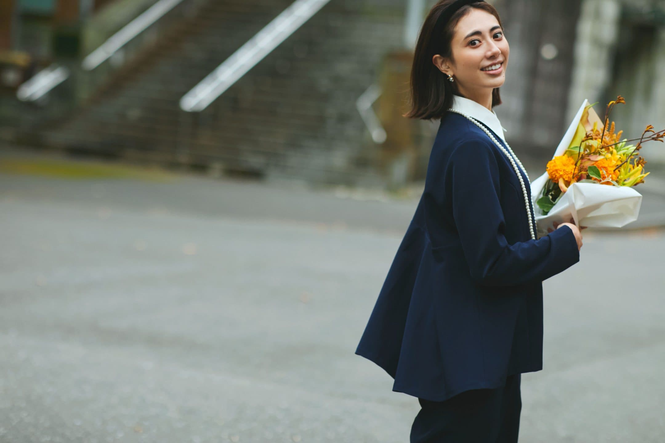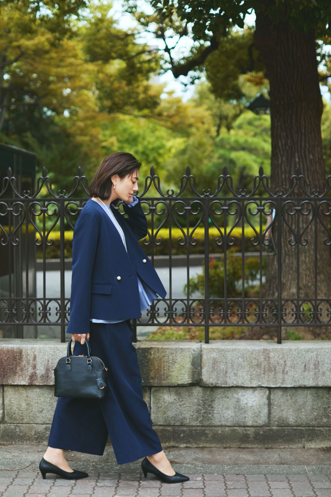 ネイビーのセットアップを合わせて