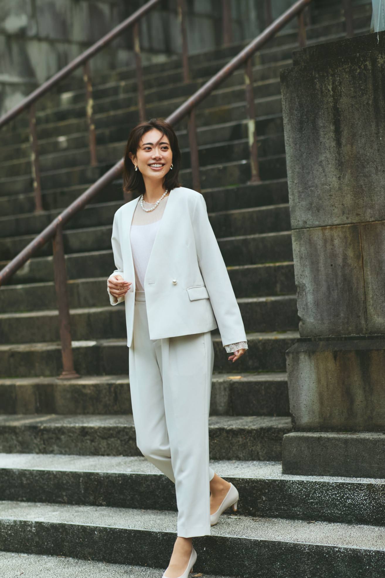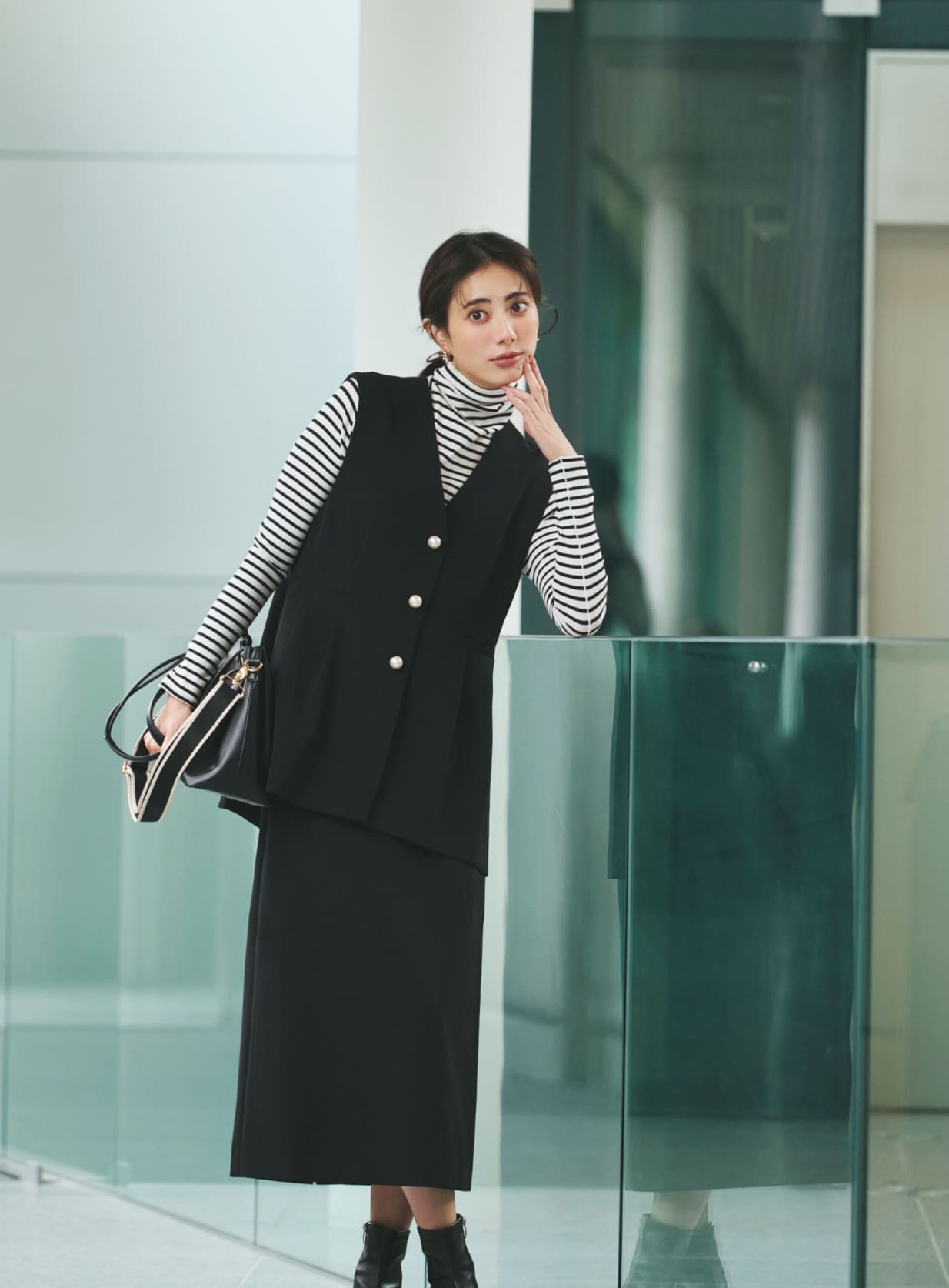 縦ラインを強調してスタイルアップも叶える。
