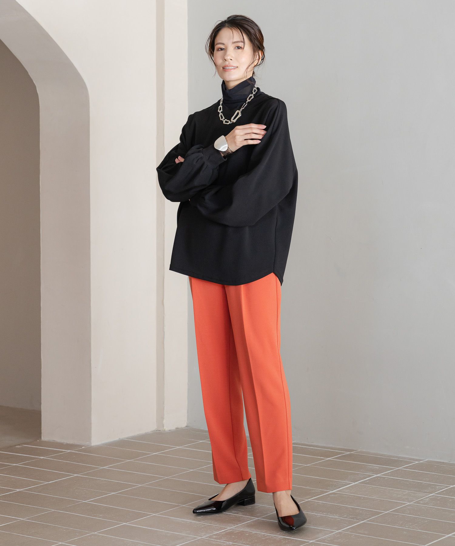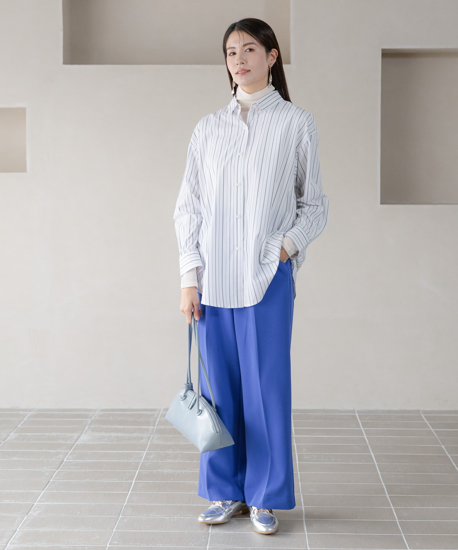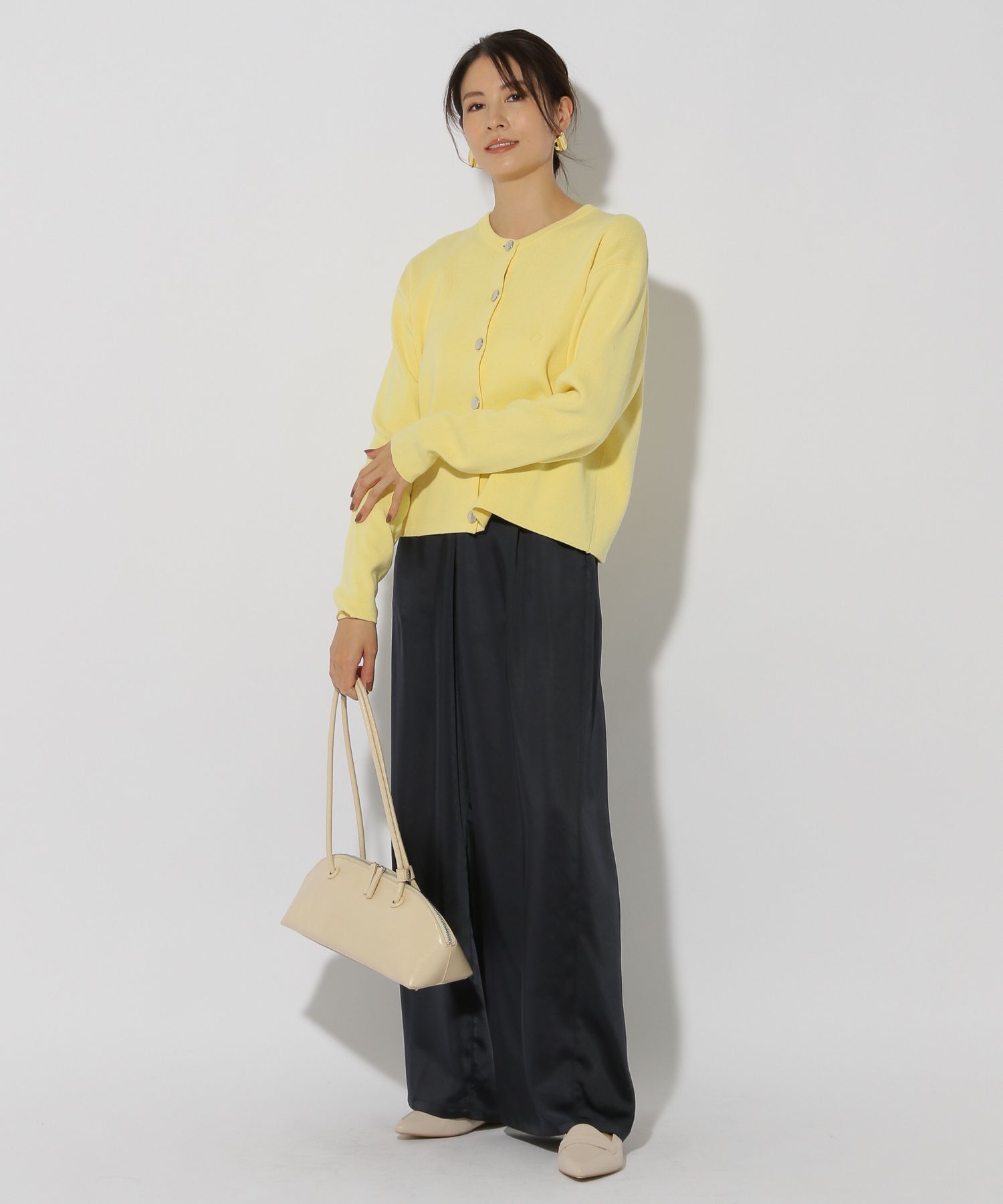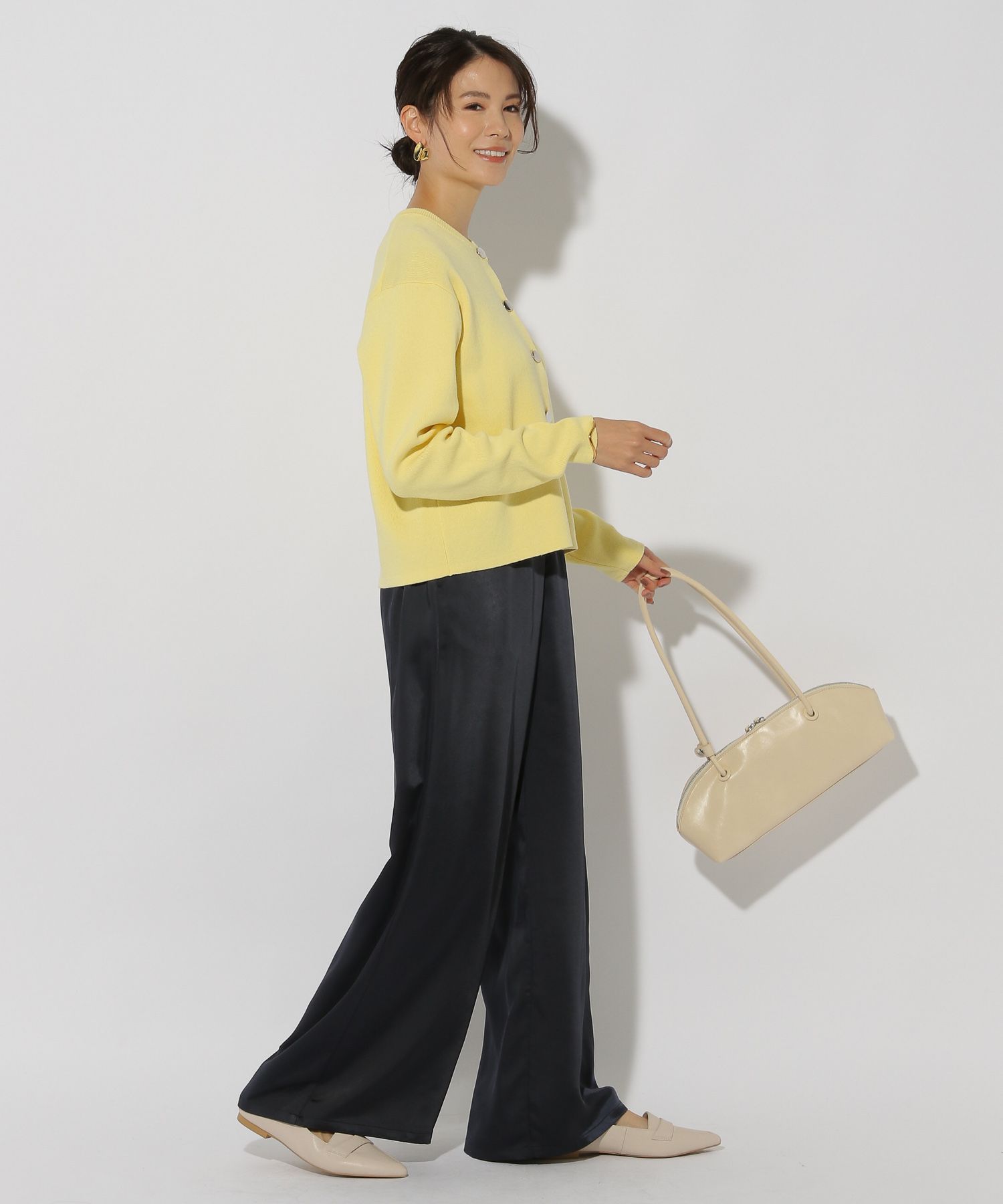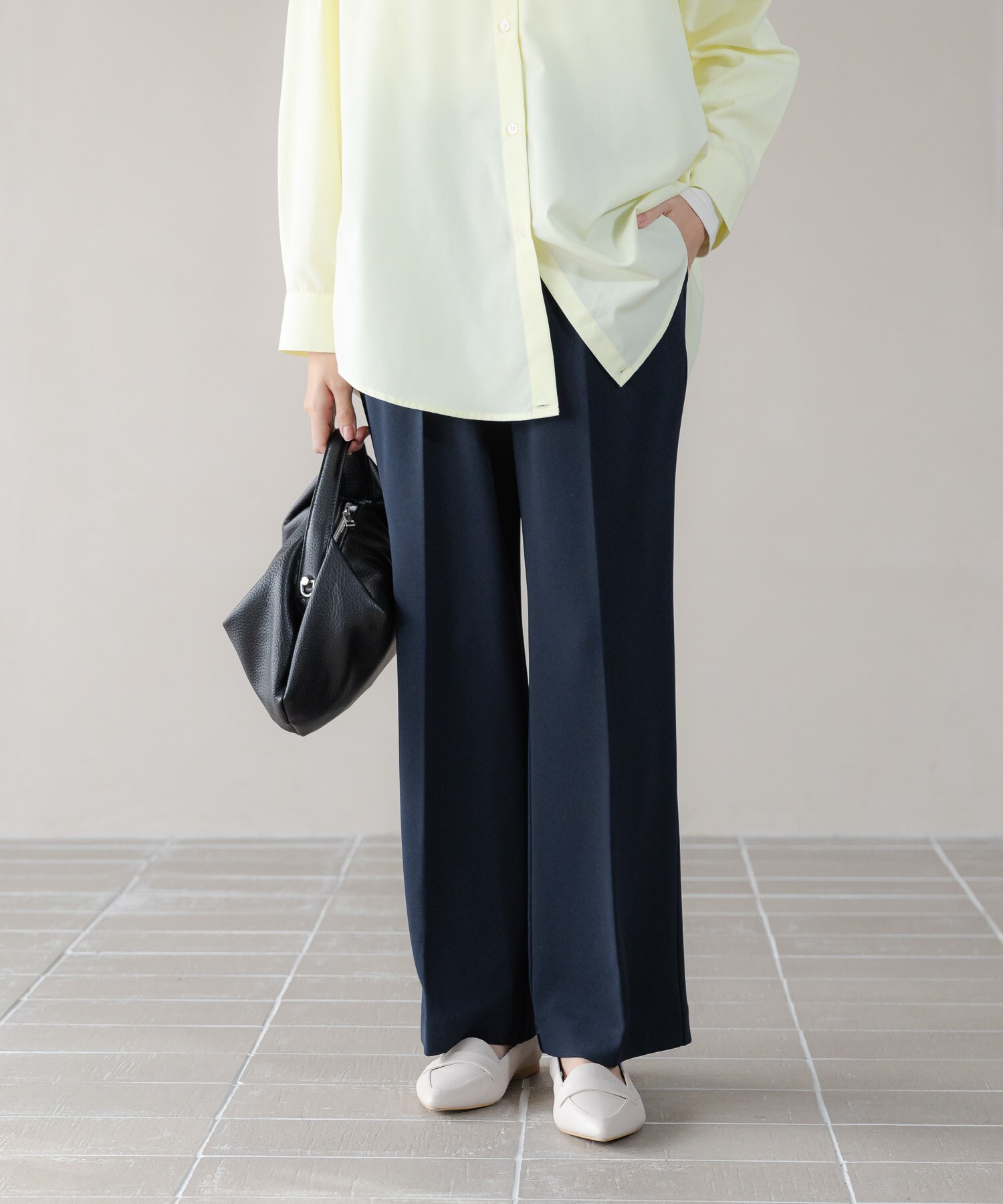 この春のスタイリングに欠かせない旬なワイドパンツです。