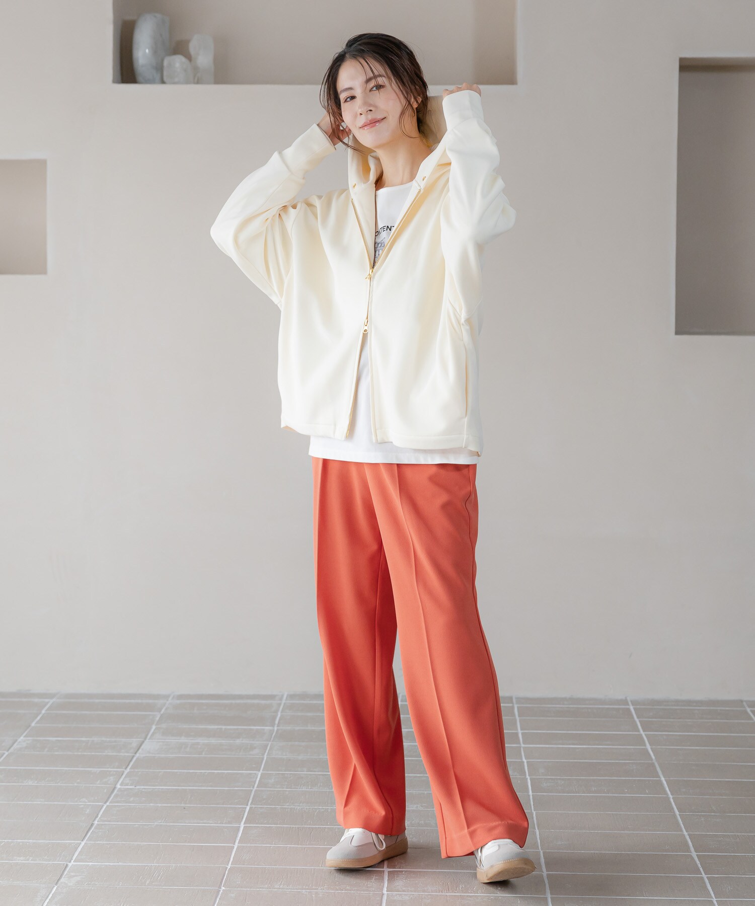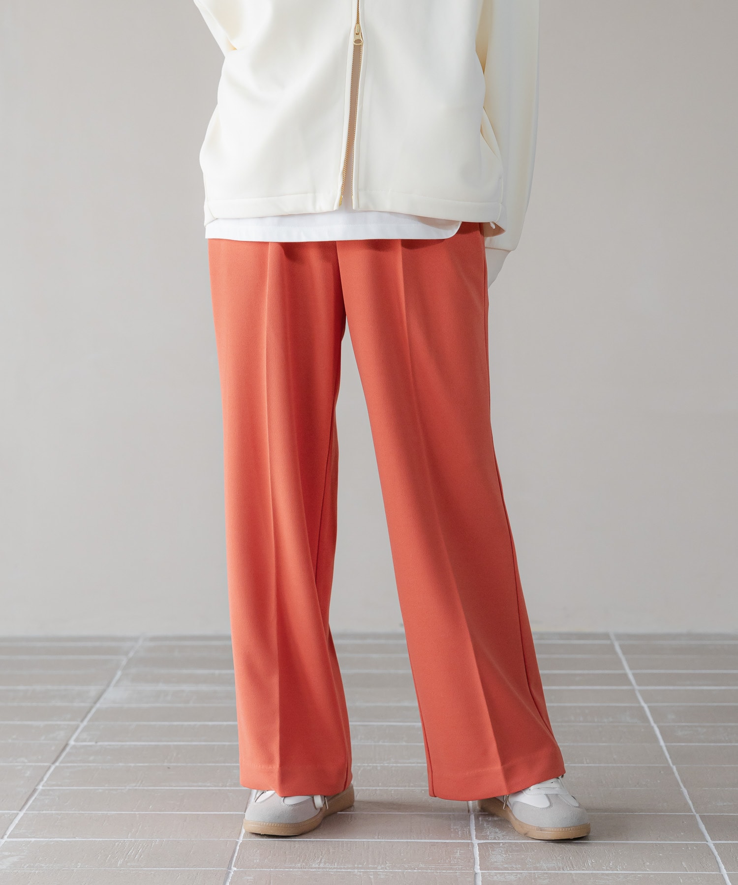 きれい見えする素材なのでスニーカーに合わせてもカジュアルになりすぎずデイリーに使えるのも嬉しいポイント♪