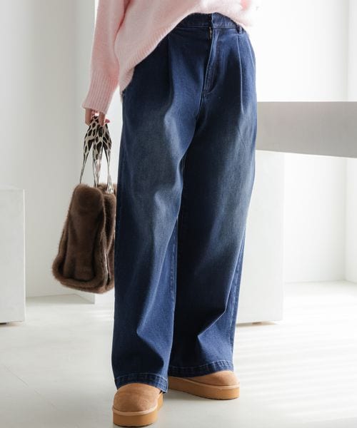 あったかワイドデニム<低身長サイズあり>