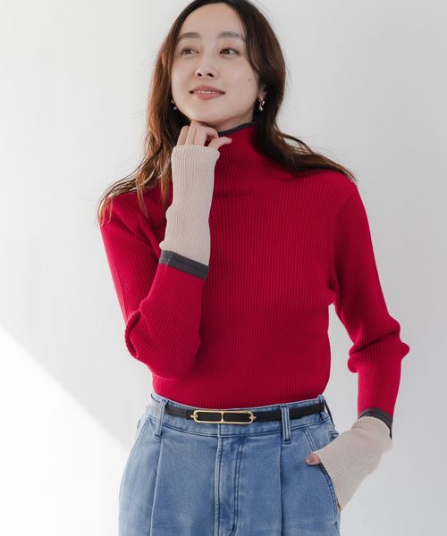 配色リブタートルニット